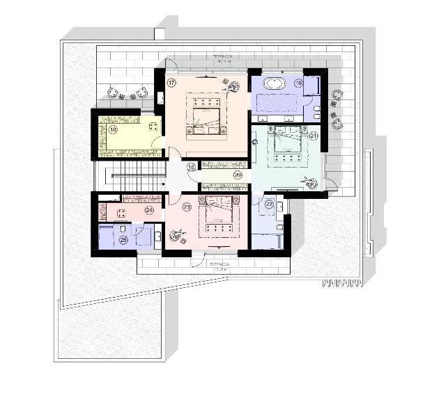Внутри вас ждет продуманное пространство площадью 526 кв.м.: большая гостиная для семейных вечеров, кухня со столовой и быстрым выходом на террасу для утренних завтраков на свежем воздухе. Множество мест для хранения, гараж на два автомобиля, четыре уютные спальни и помещения для персонала – все это создано для вашего комфорта. На каждом этаже просторные террасы – летом они станут вашим любимым местом для семейных пикников и встреч с друзьями.