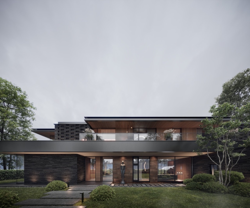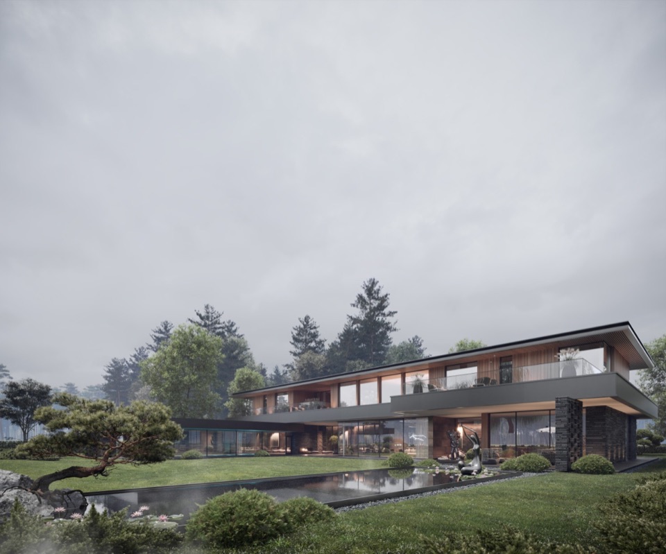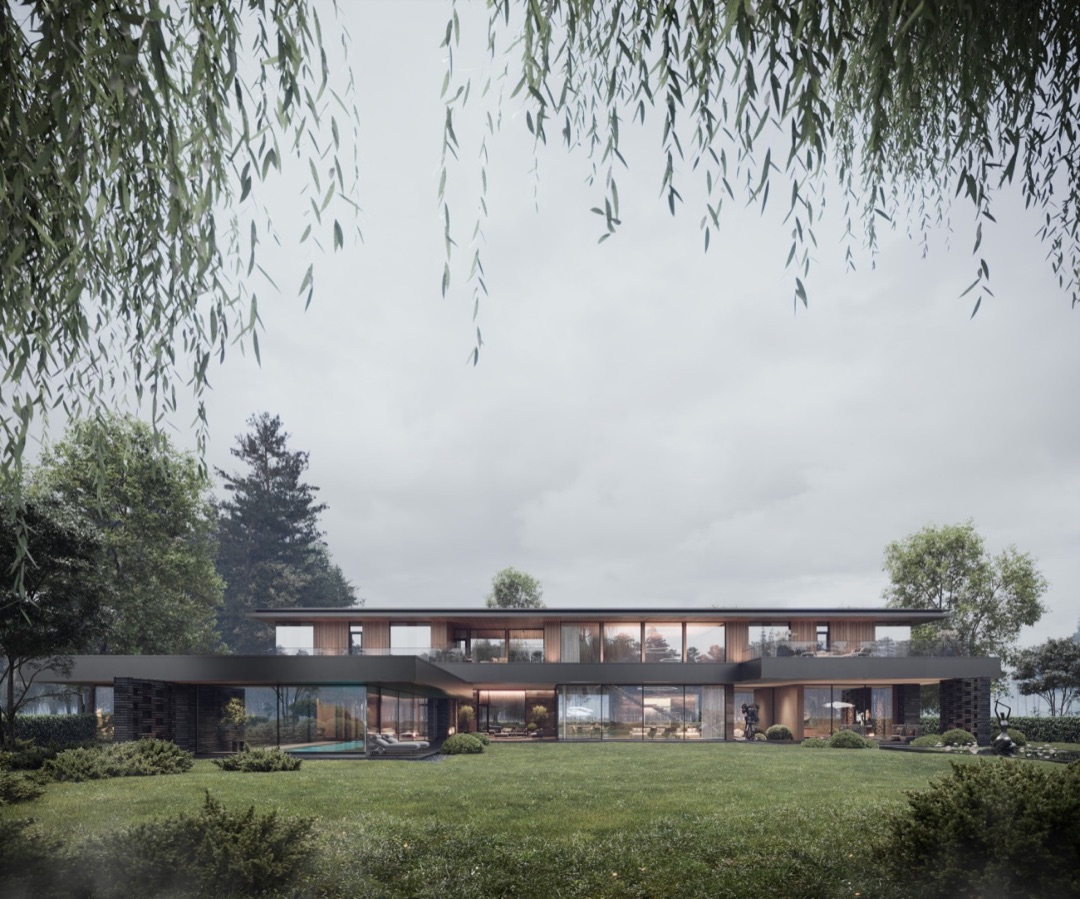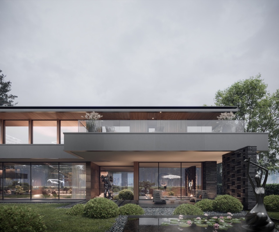 Заходя в дом, вы попадаете в большую прихожую, а затем в светлую и просторную гостиную-столовую с выходом на террасу и зону барбекю. Слева разместилось несколько гардеробных, гостевая спальня и помещение под библиотеку или кинотеатр. Также на этаже — кабинет, технические и бытовые помещения, СПА, бассейн.