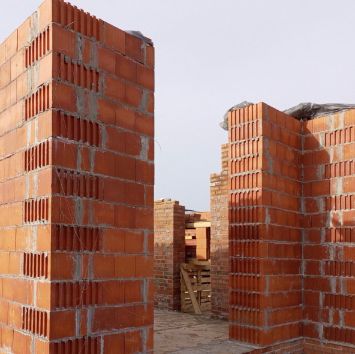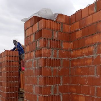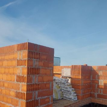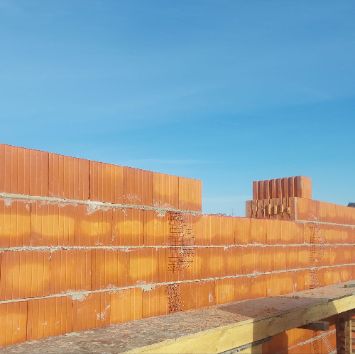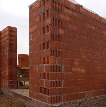 Сейчас мы кладем внутренние стены из полнотелого красного кирпича на универсальную смесь Perfekta. Осталось совсем немного до монтажа перекрытия.