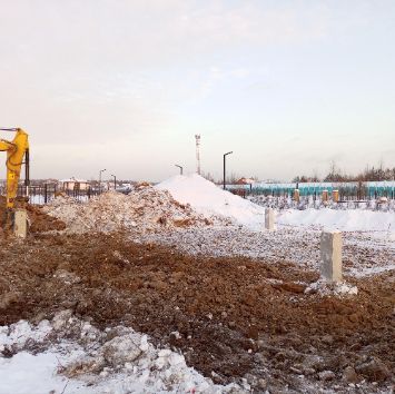 — начали кладку цоколя из красного полнотелого кирпича Каширского завода.