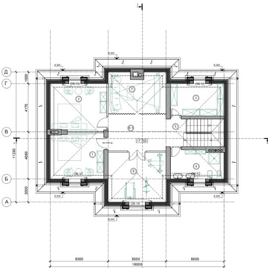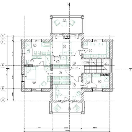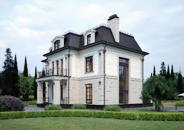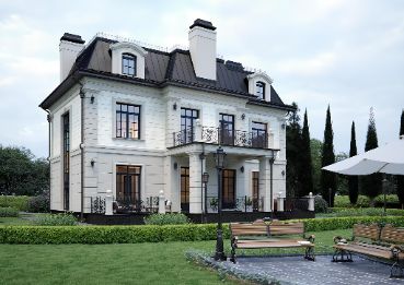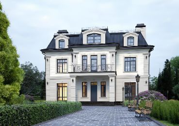 Двухэтажный классический дом с окнами в пол и утепленной мансардой — идеальный вариант для большой семьи. Планировкой предусмотрено 6 спален, спортзал и домашний кинотеатр для семейных вечеров. Со стороны внутреннего двора — просторная терраса и балкон с видом на участок.