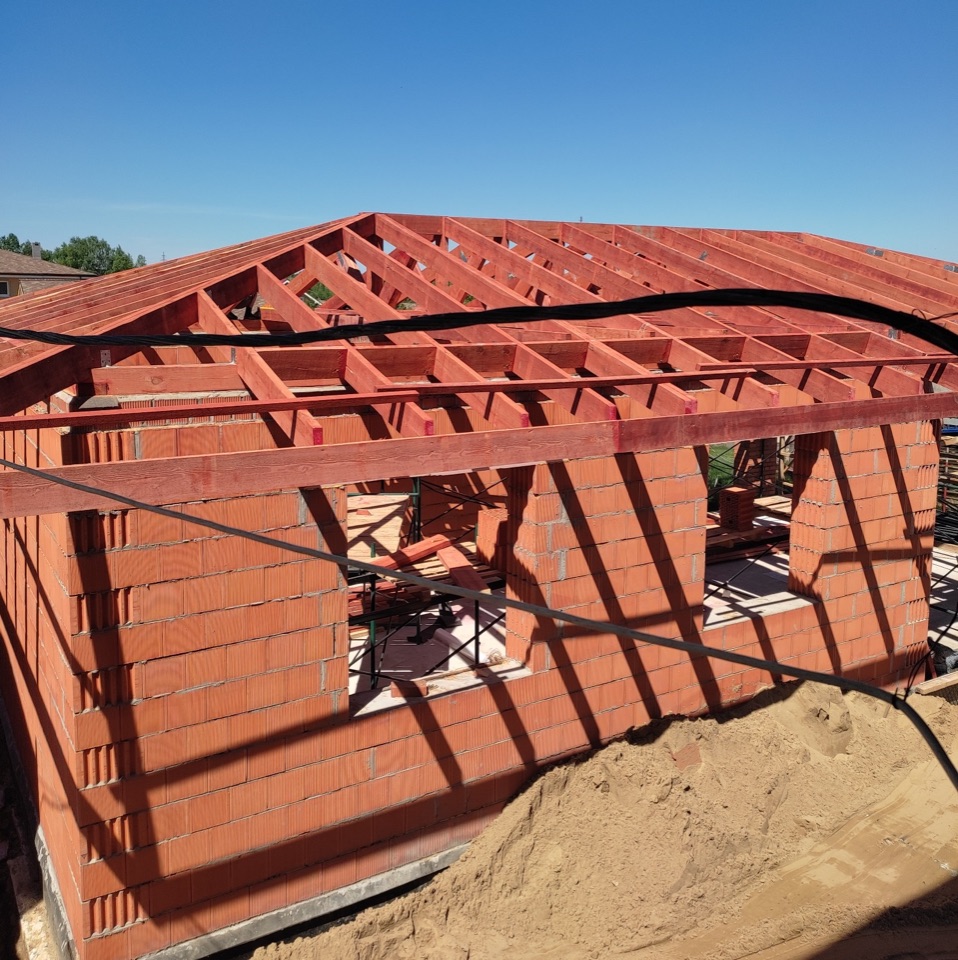 09 июня 2022 года. Кладка перегородок в доме и устройство стропильной конструкции гаража в КП «Тихие зори»