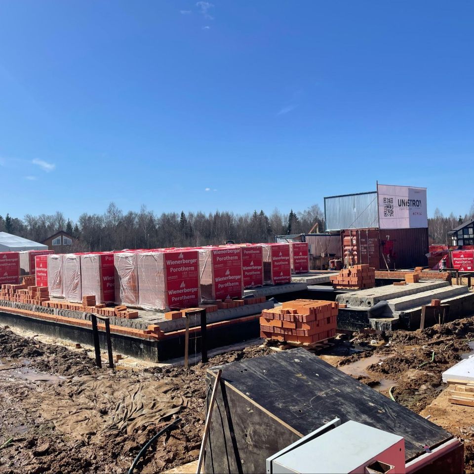 Работы на объекте в самом разгаре, идет прием блоков Porotherm, смеси и других строительных материалов со склада Unimart.