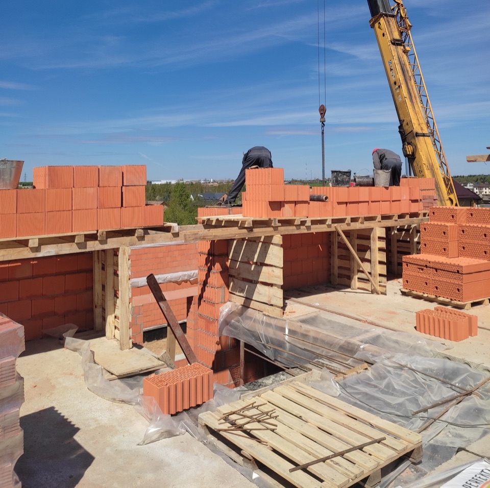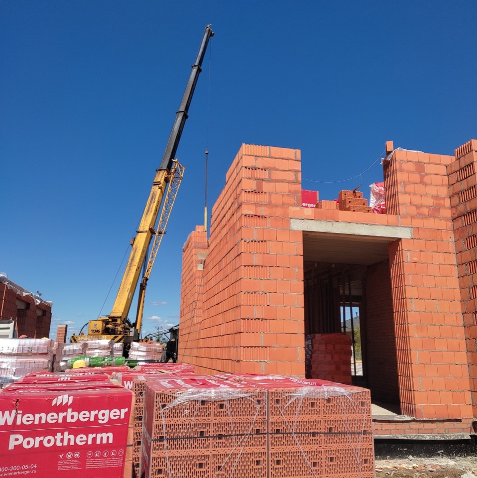 Параллельно идет прием кирпича и сухой смеси со склада нашего партнера — гипермаркета строительных материалов Unimart.