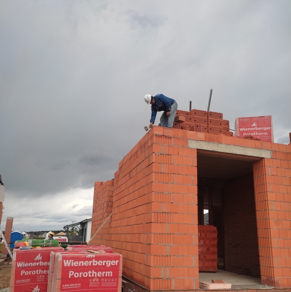 Кладку из крупноформатных керамических блоков Porotherm важно выполнять на специальные «теплые» кладочные растворы. Это поможет избежать образования мостиков холода, которые сведут на нет теплоизоляционные свойства материала. Мы используем в работе кладочный раствор PERFEKTA «Линкер Термо» с перлитовым песком и фиброволокном. Его коэффициент теплопроводности соответствует уровню блоков Porotherm, а система внутреннего армирования предотвращает затекание смеси в полости.