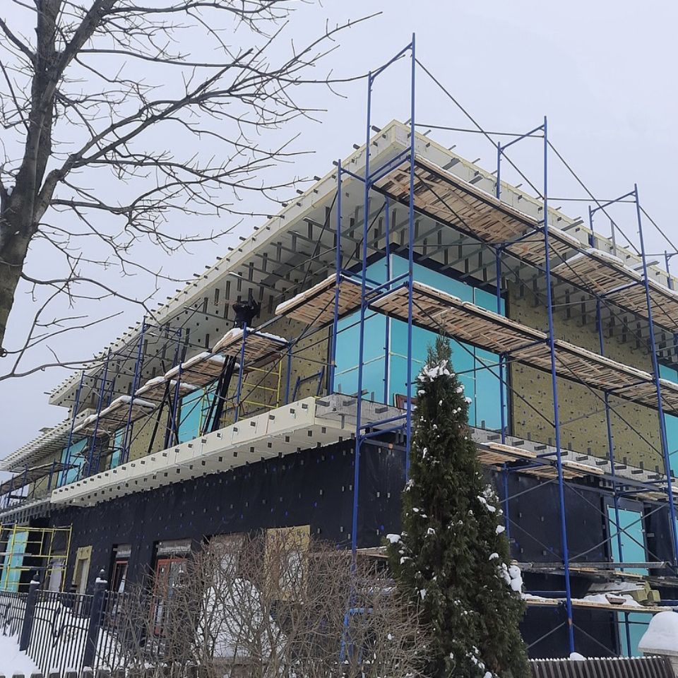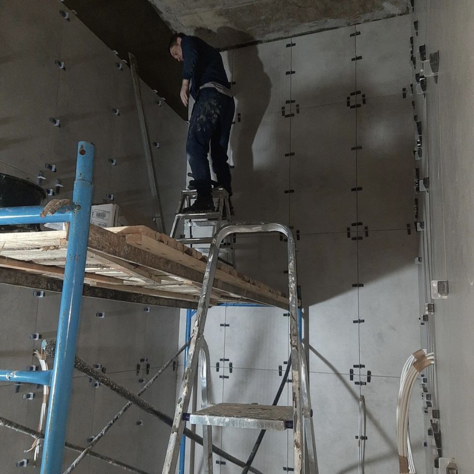 На первом этаже дома мы приступили к отделке котельной плитами из керамогранита Italon в цвете Pure Nat Ret. Они отличаются минимальным водопоглощением, устойчивы к истиранию, воздействию химических веществ и образованию пятен. Монтаж плитки выполняли на клей Ceresit СМ 17 Super Flex. Этот суперэластичный, устойчивый к деформациям клей, обладает высокой адгезией и предназначен для крепления всех видов минеральных плиток. Параллельно в доме и на лестничной площадке продолжается монтаж рам остекления.