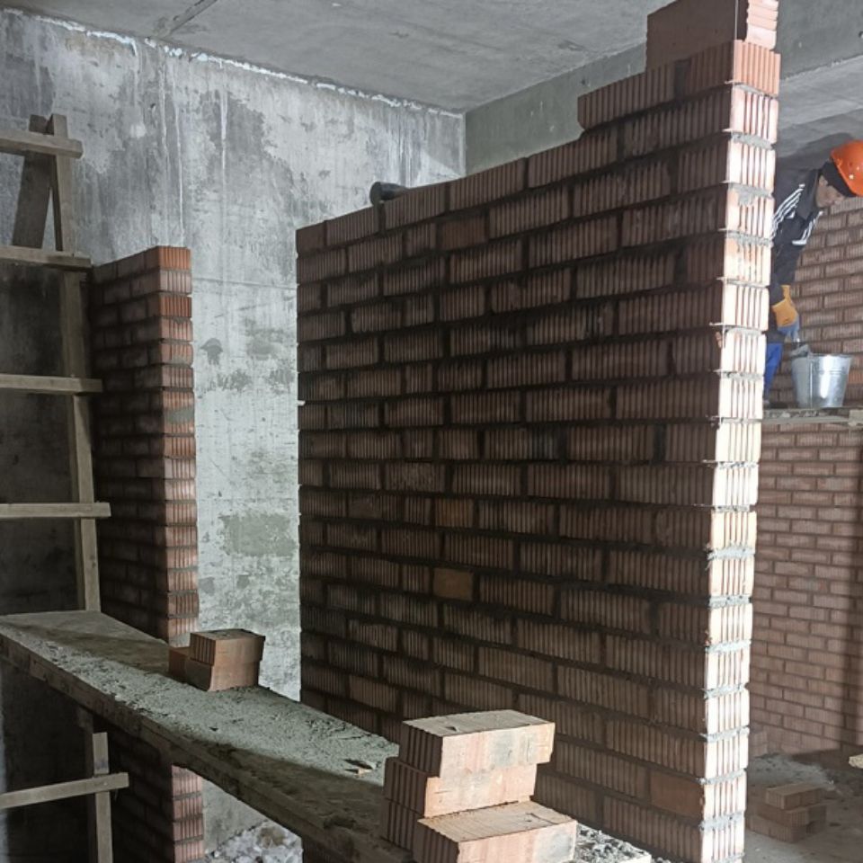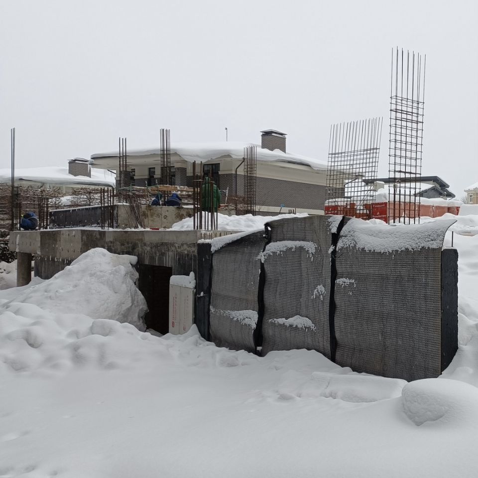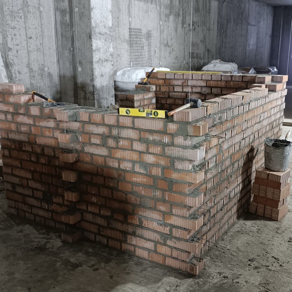 В прошлом месяце мы занимались устройством перекрытий цокольной и подвальной частей дома, и теперь приступили к кладке стен и перегородок подвала. Начали работы с уборки мусора, очистки снега и разметки будущих стен. После этого приступили к кладке из полнотелого рядового кирпича М150 «Каширского кирпичного завода». Ее мы выполняли на смесь Perfekta М-150 «Универсальная». Она легка в нанесении и разравнивании, обладает хорошей адгезией, имеет высокую прочность на сжатие и не дает усадки при высыхании.