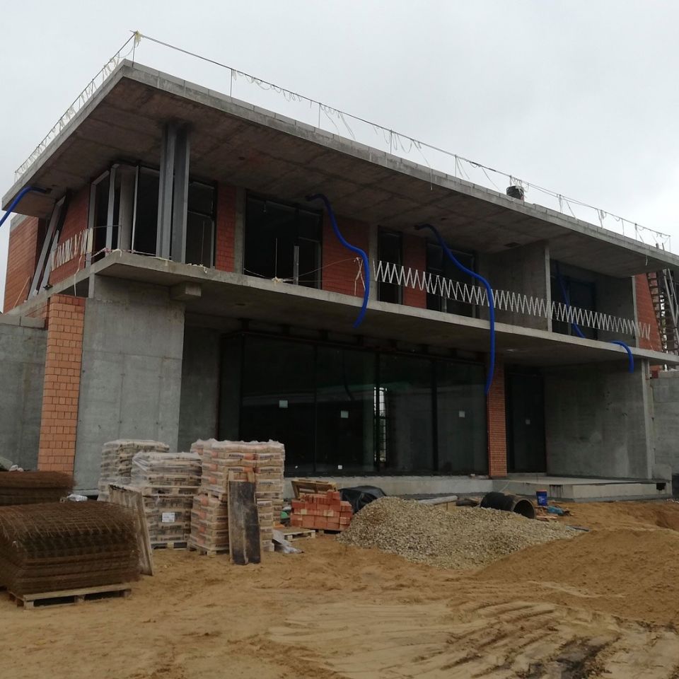 Дом, площадью 1333 кв.м. — еще один масштабный проект от SL Project, который мы начали в этом году. В основании монолитный армированный фундамент, а стены возведены из Каширского кирпича.