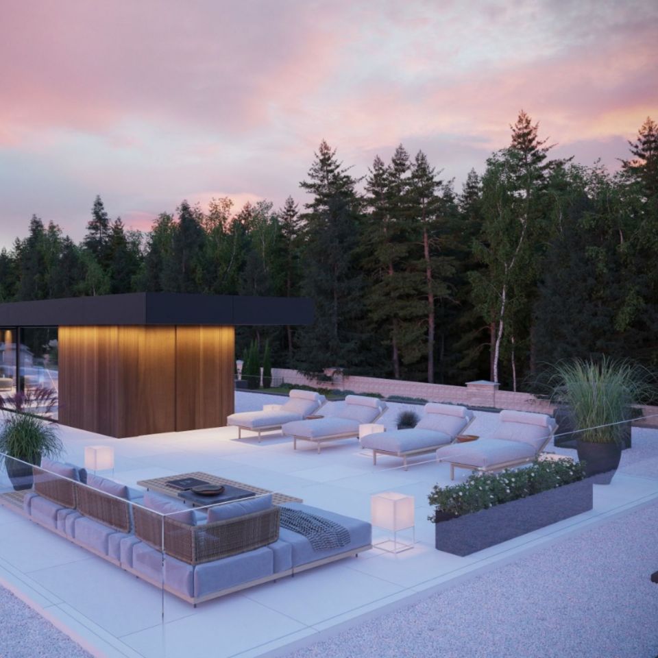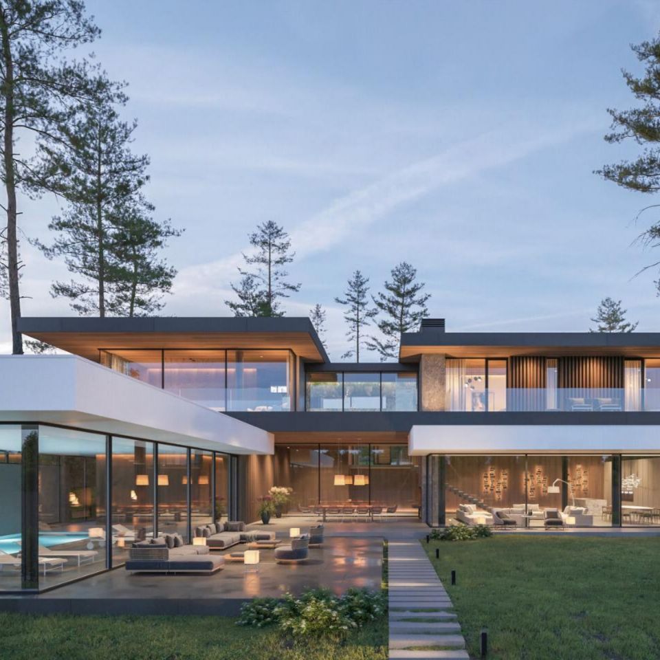 Это один из наших самых больших и амбициозных объектов в 2021 году! Общая площадь дома — 1780 кв. метров, на которых разместилось 6 террас, лаунж-зона, бассейн и зимний сад.