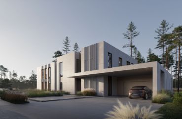 В элитном коттеджном поселке «Ренессанс парк» ведется строительство двухэтажной виллы, общей площадью 700 кв. м. Проект разработан архитектурным бюро Laptev & Partners для ценителей современного стиля в архитектуре. Благодаря строгим прямым линиям дом гармонично вписывается в загородный ландшафт.