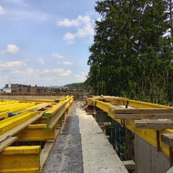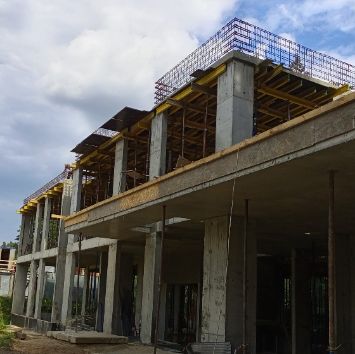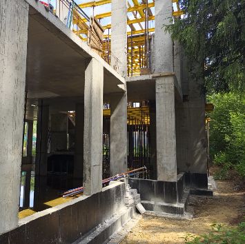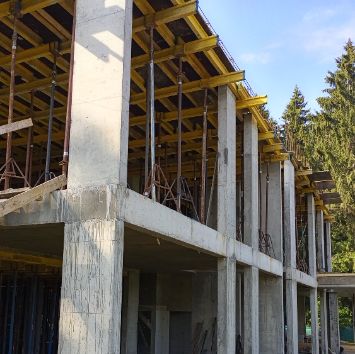 На объекте продолжаются работы по устройству арматурного каркаса перекрытия второго этажа. После их завершения рабочие приступят к раскреплению опалубки монолитных балок и торцов.