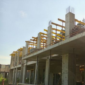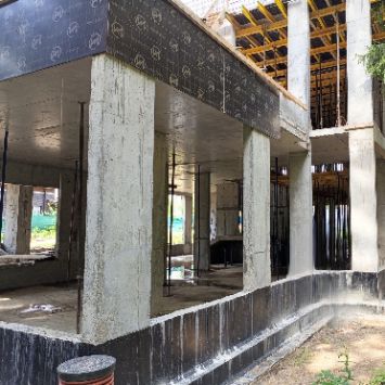 Всю минувшую неделю велись работы по установке и раскреплению опалубки монолитного парапета первого этажа. Также было выполнено устройство арматурного каркаса балок, плиты перекрытия 2-го этажа и ее бетонирование.