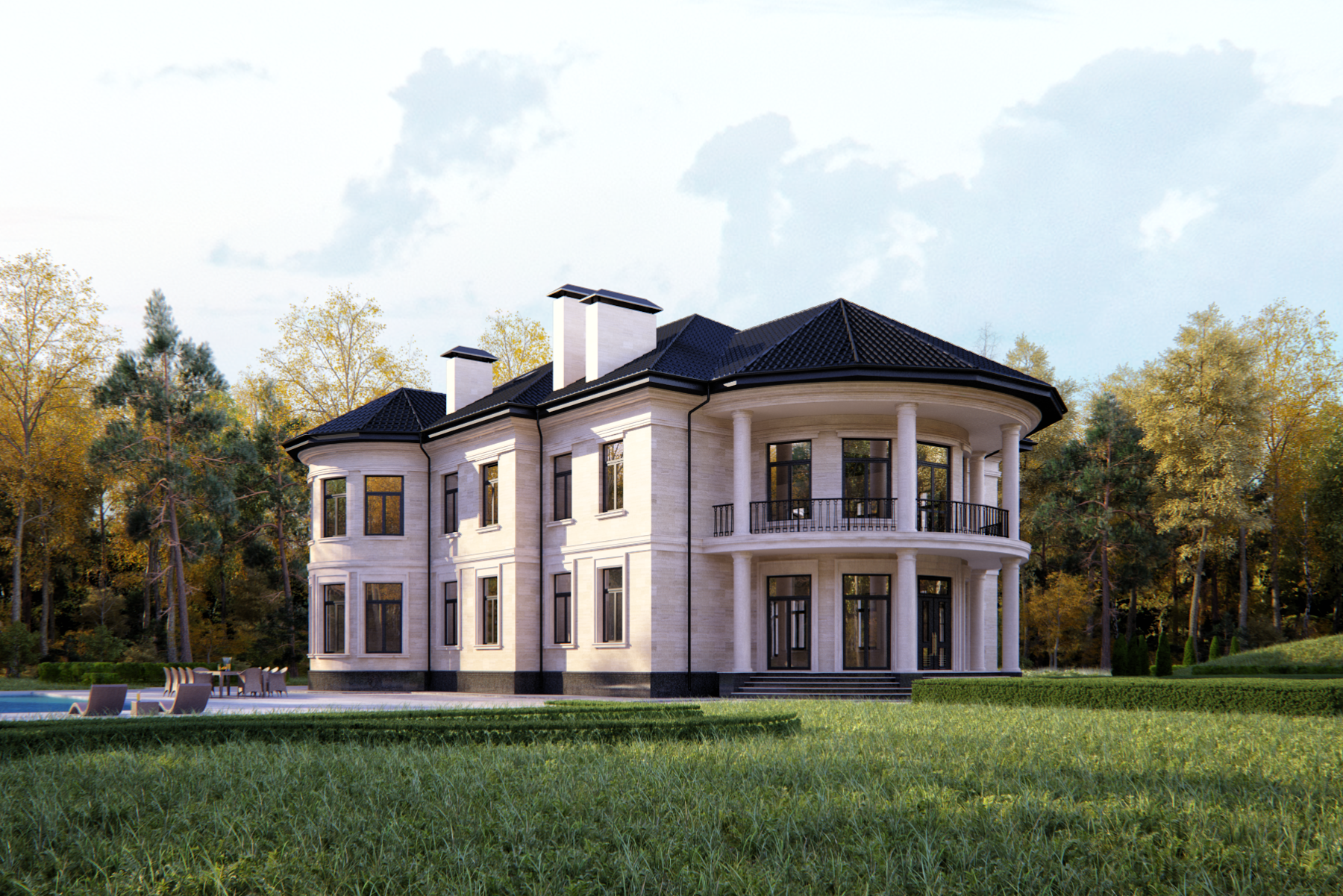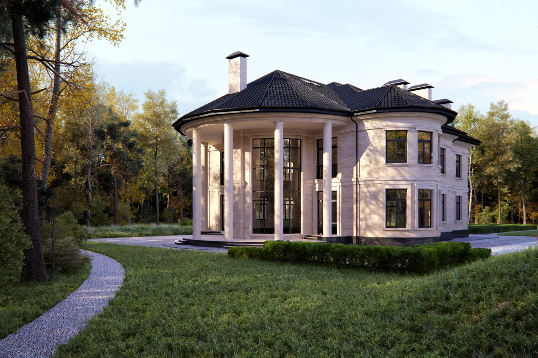 Коттедж «Родос» поражает своим изяществом и торжественностью. Оригинальное архитектурно-планировочное решение проекта в стиле ар-деко сочетает в себе изысканные архитектурные формы с комфортом и эргономичной функциональностью. Плавные линии фасада и огромные панорамные окна придают проекту величественность и особое очарование. Современные мозаичные элементы фасада дома дополняют гармоничный внешний облик этого проекта в современном стиле.