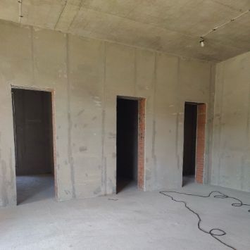 Современный комплекс включает основной двухэтажный дом площадью 785,1 кв.м., отдельный блок для персонала — 41,3 кв.м. и зону барбекю с комнатой отдыха — 100,2 кв.м. У дома продуманная планировка. На 1-м этаже размещены: кухня-столовая, гостиная, игровая комната, тренажерный зал, бассейн с хамамом, 2 гардероба, 4 санузла, гостевая спальня, гараж на 4 автомобиля, хозяйственные помещения и терраса. Второй этаж занимают 3 спальни с гардеробными и санузлами, а также комната свободного назначения, которая может стать кабинетом или библиотекой. В доме высокие потолки до 4,3 м и большая площадь остекления, поэтому в комнатах всегда будет светло и уютно.