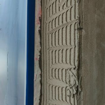 - Грунтовка и адгезив «под гребенку». Без этого штукатурка может просто отойти от основания из-за разной впитывающей способности материалов.