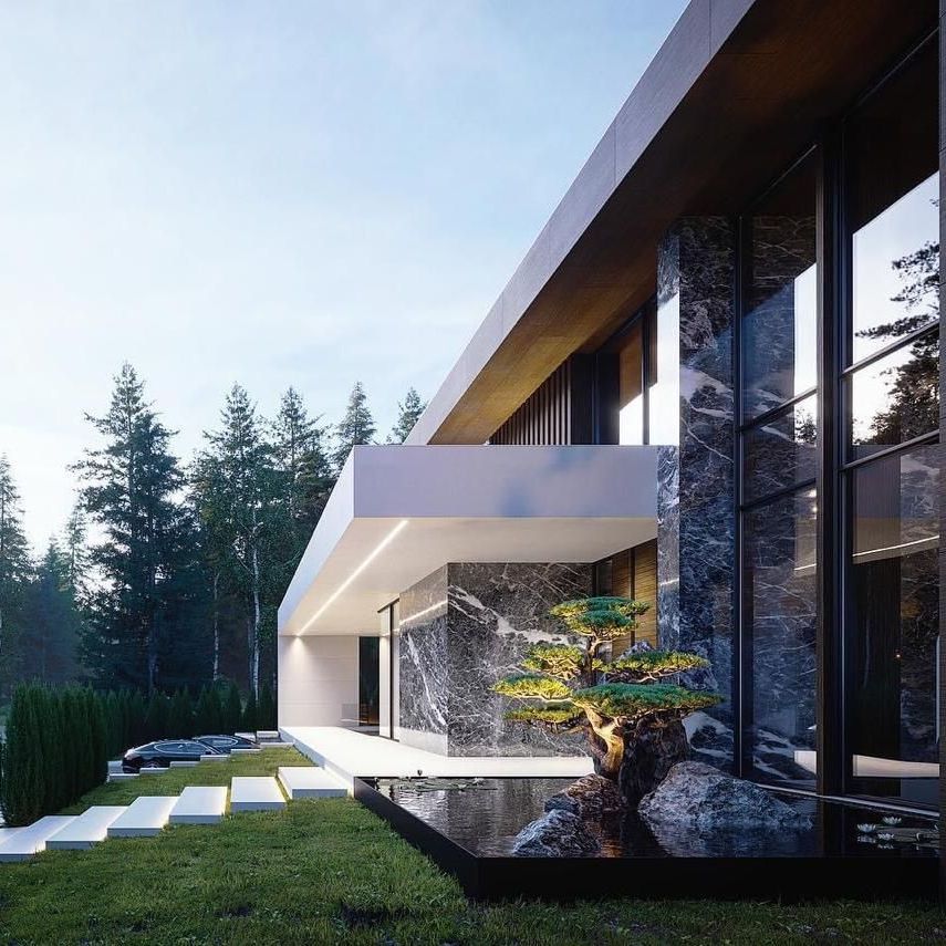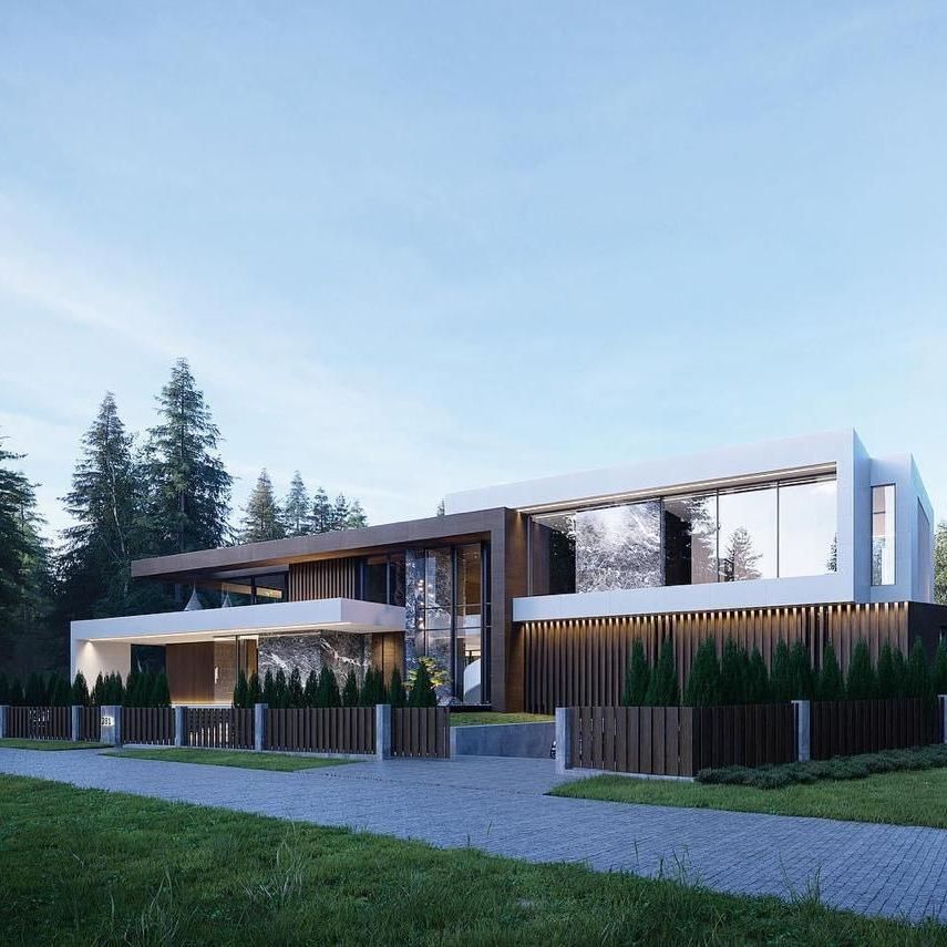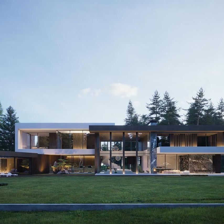 Вилла в современном стиле с бассейном в элитном коттеджном поселке «Ново-Николино» строится по проекту архитектурного бюро SL* project.