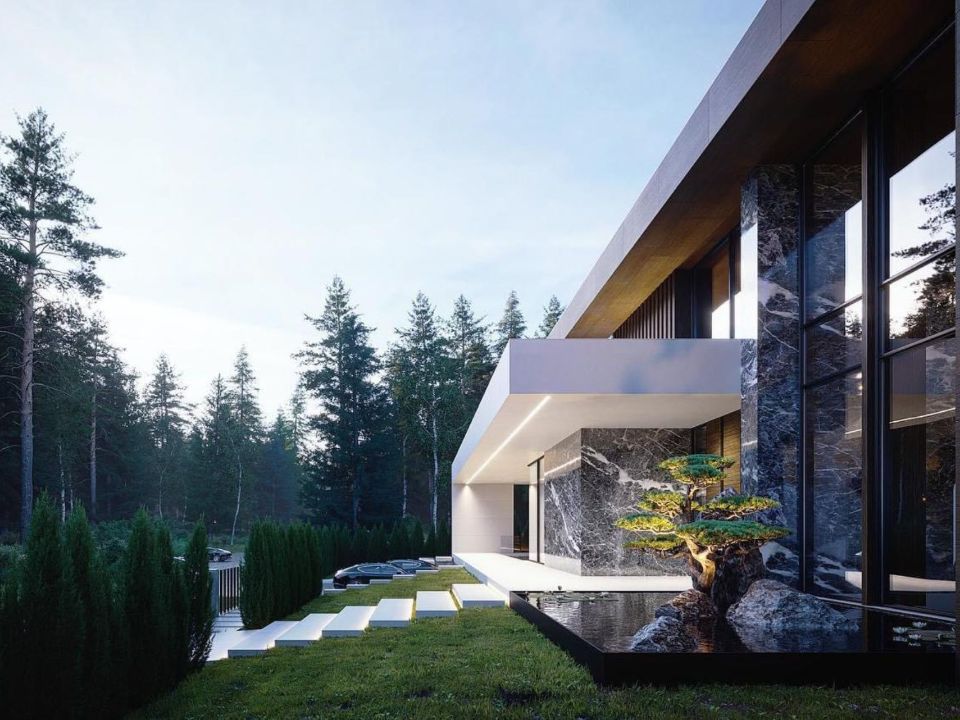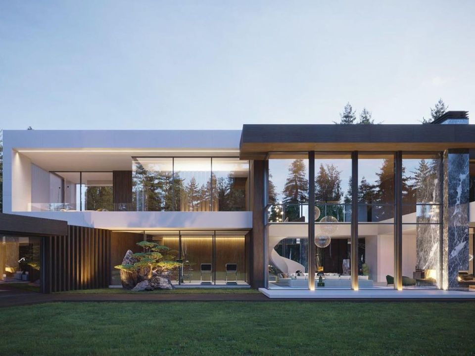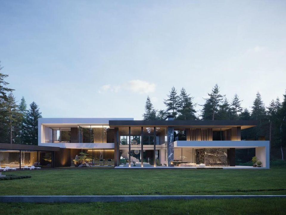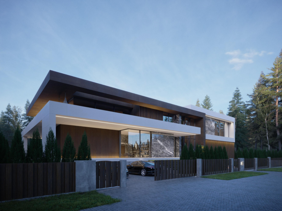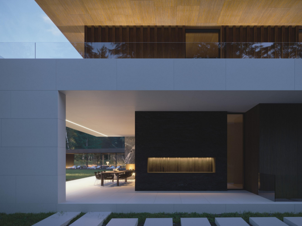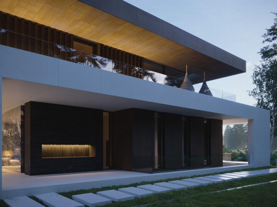 Вилла в современном стиле с бассейном в элитном коттеджном поселке «Ново-Николино» строится по проекту архитектурного бюро SL* project.